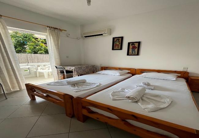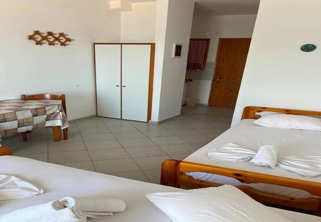Сите соби се опремени  со кујна опремена со мини фрижидер сo комора, решо со две рингли, елемент под кујна, LCD TV, клима и маса и столчиња, (соодветен број на кревети). Прозорите имаат шибер ролетна и завеси, но немаат комарник. Тоалетот е со туш када дирекно на плочки и со прозор.