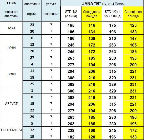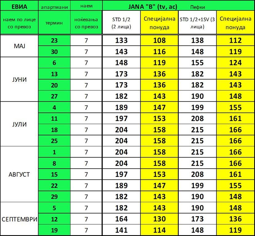 ЦЕНОВНИК ЗА НАЕМ ОД 7 НОЌЕВАЊА