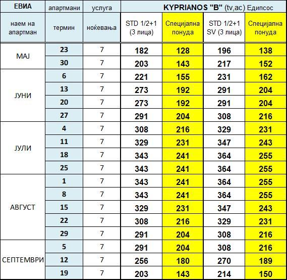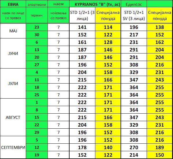 - ЦЕНОВНИК ПО ЛИЦЕ ЗА 7 НОЌЕВАЊА СО ВКЛУЧЕН АВТОБУСКИ ПРЕВОЗ + ТРАЕКТ