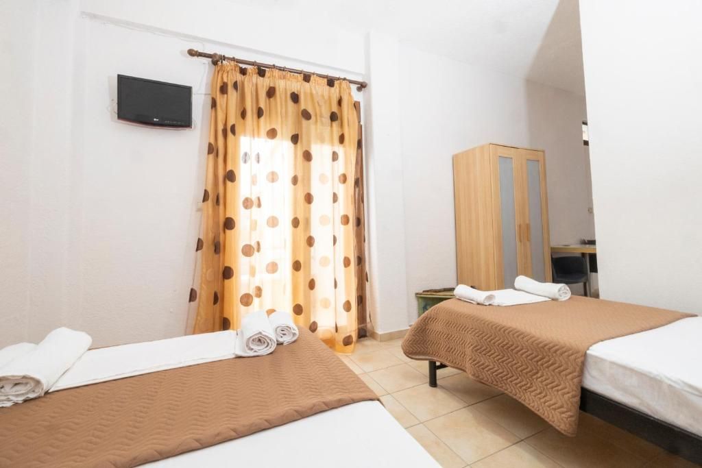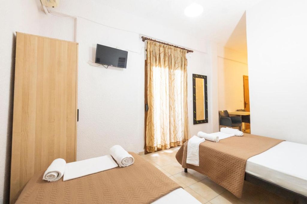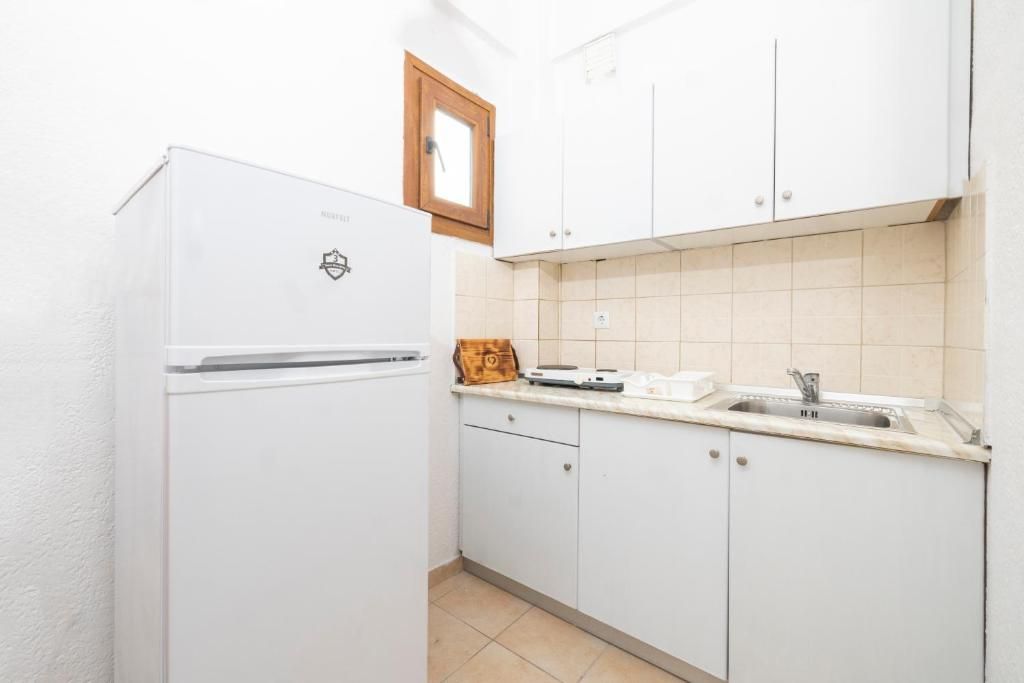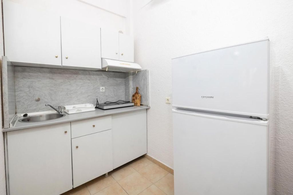 Студио бр. 1 – високо приземје. Располага со комплетно опремена кујна со голем фрижидер и мало решо, комплетно реновиран тоалет, сопствена тераса опремена со маса и столови и поглед кон парк, клима, ТВ, Wi-Fi. Има француски кревет и еден стандарден кревет.