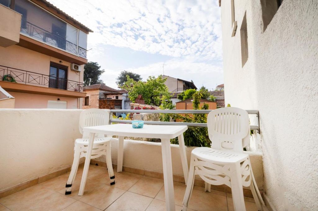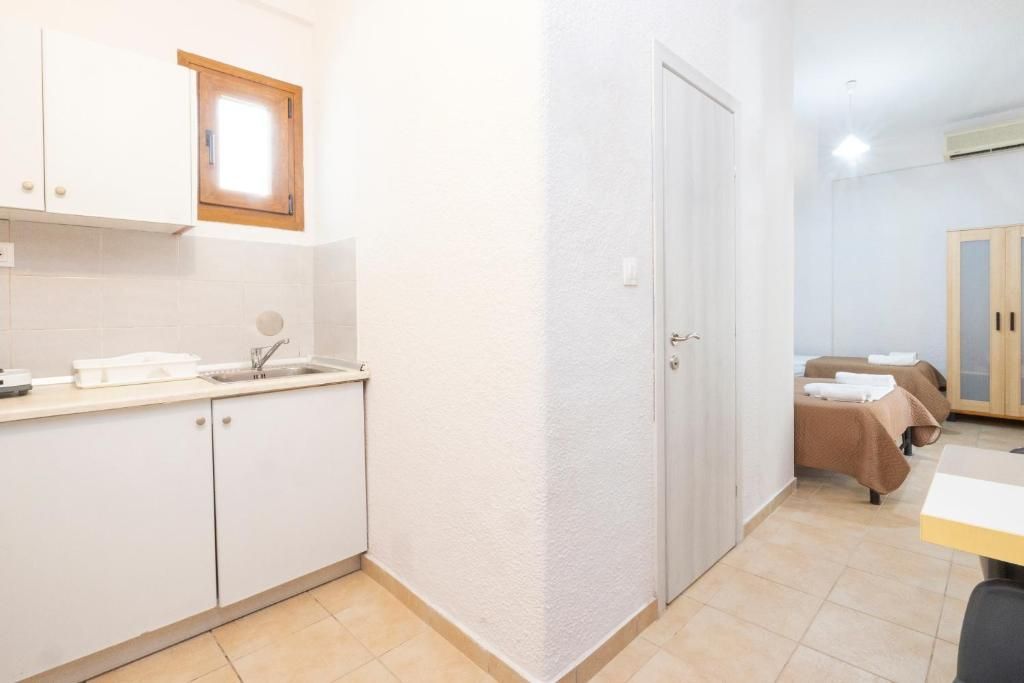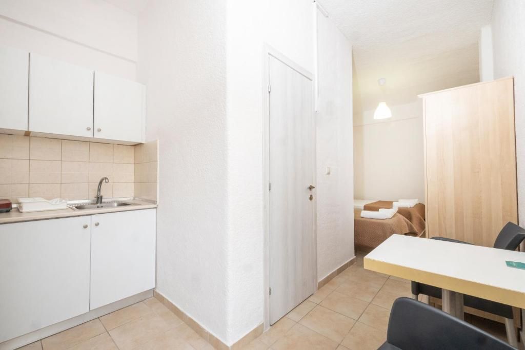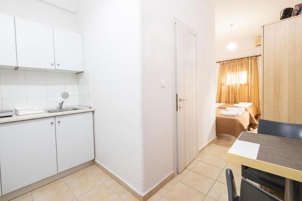 Студио бр.4 – високо приземје. Располага со комплетно опремена кујна со голем фрижидер и мало решо, комплетно реновиран тоалет, сопствена тераса опремена со маса и столови и поглед кон парк, клима, ТВ, Wi-Fi. Има француски кревет и еден стандарден кревет.