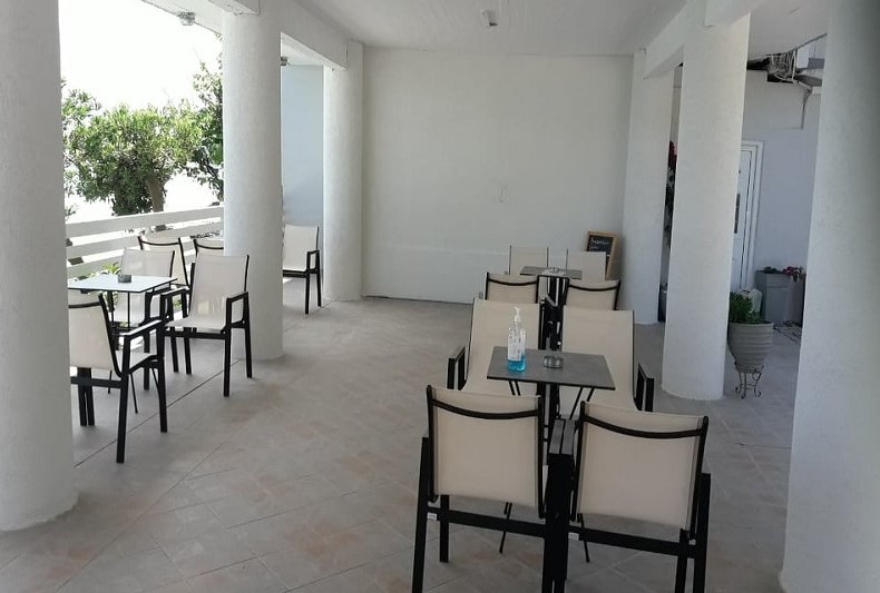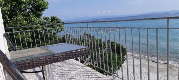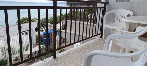 Студиото се наоѓа на прв кат и излегува на тераса на која има маса со столици. Студиото е со поглед на море. На плажата имате лежалки и чадор кои се користат со нарачка на пијалок.
