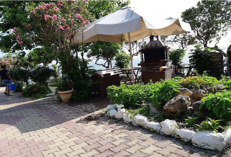 Студиото се наоѓа на приземје и излегува на убав и голем двор на која има маса со столици. Студиото е со поглед на море. На плажата имате лежалки и чадор кои се користат со нарачка на пијалок.