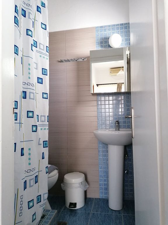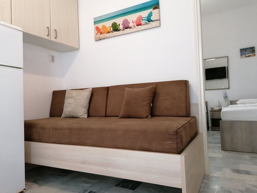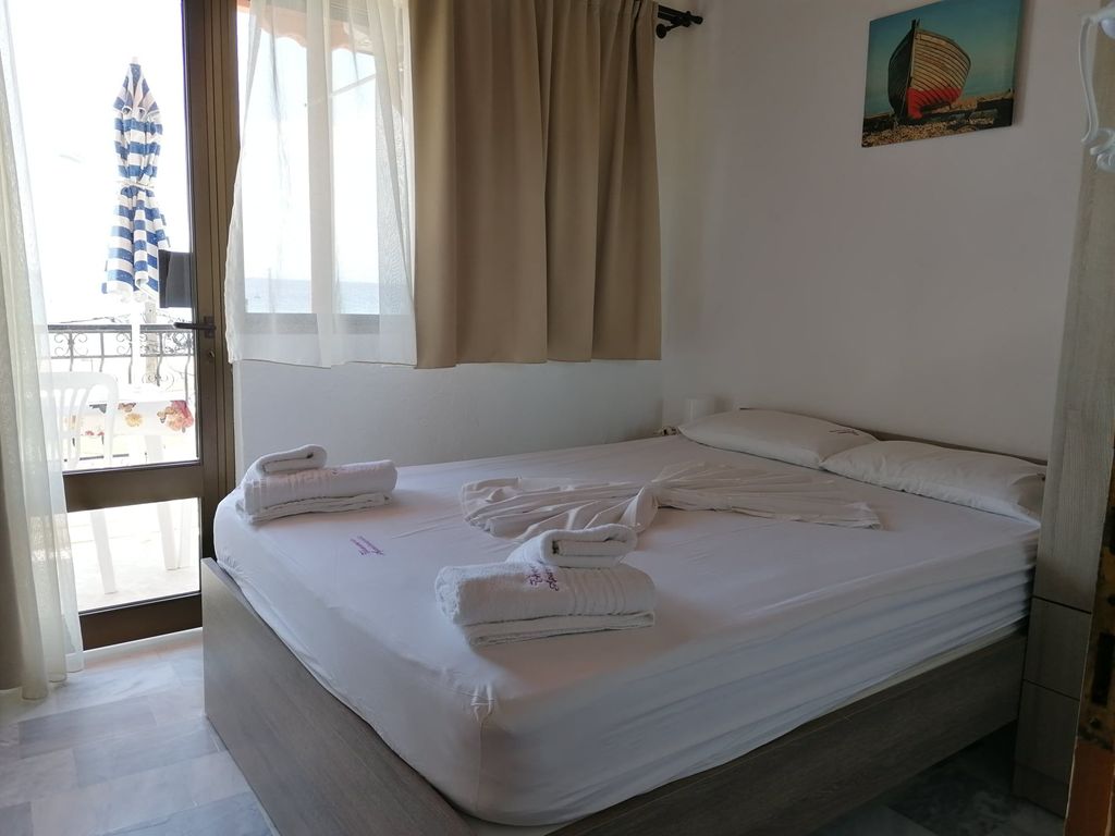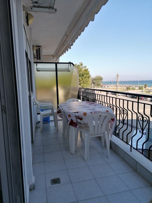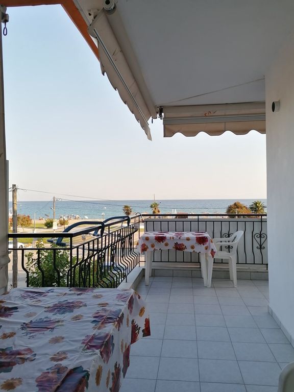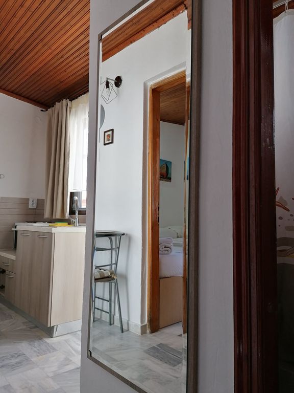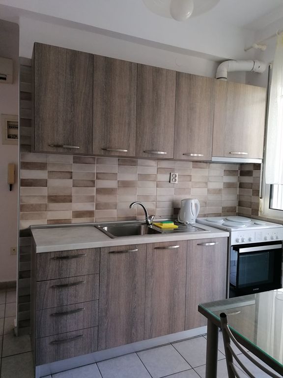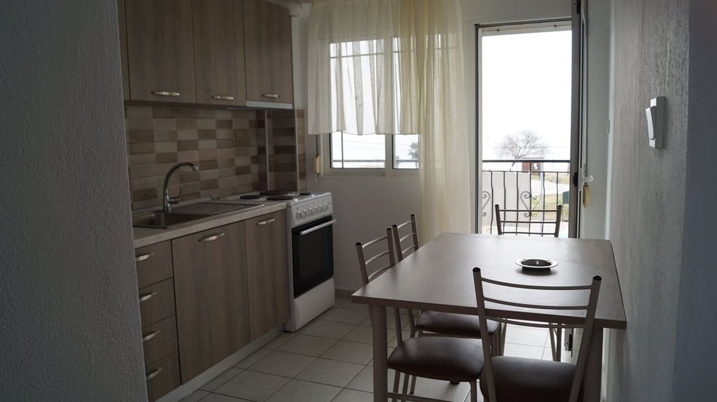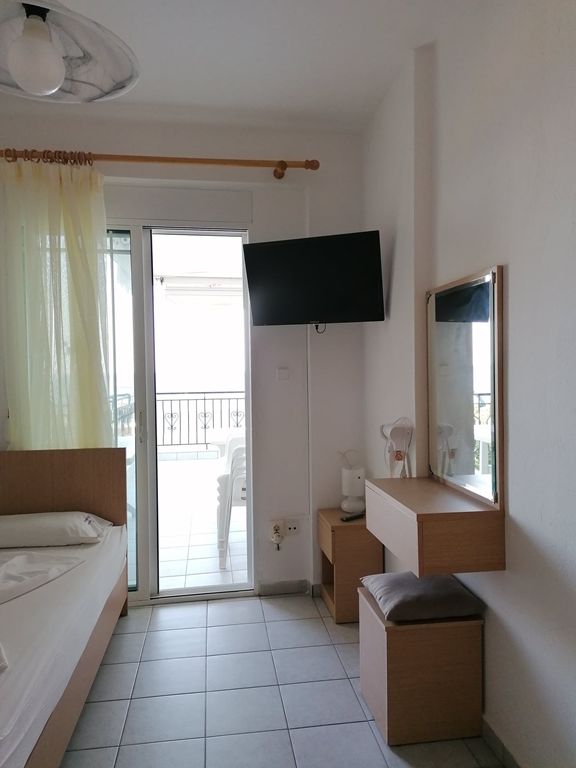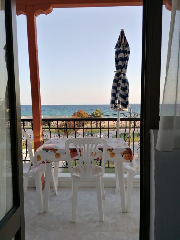 1/3 Студио бр. 10 – втор кат. Студиото има една просторија. На самиот влез има комплетно опремена кујна со мини шпорет со рерна, аспиратор и комплет садови за готвење и јадење. Во овој дел се наоѓа климата. Во продолжение на просторијата има еден брачен и еден единечен кревет, мебел, телевизор, фен и голем фрижидер со одделна комора. Од студиото се излегува на терасата која има директен поглед на море и е опремена со пластична маса и столчиња. Има потесно купатило со туш.