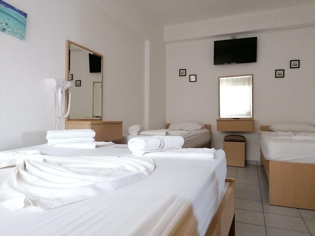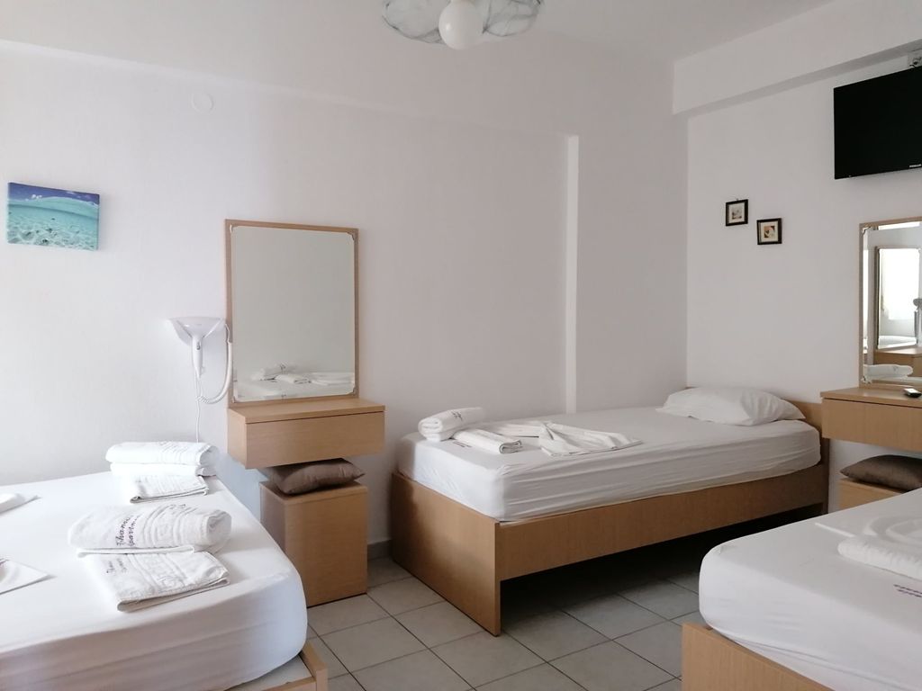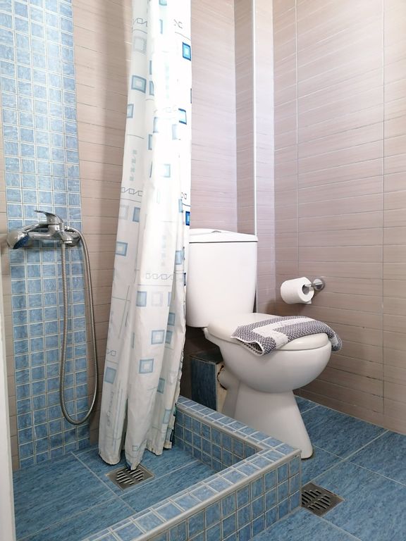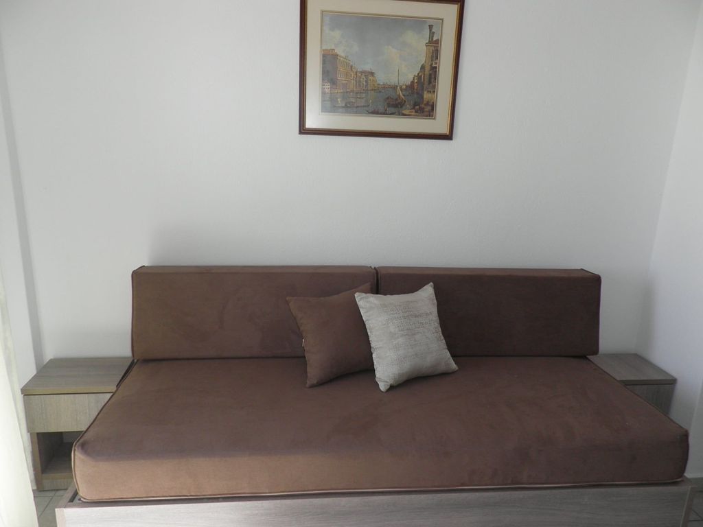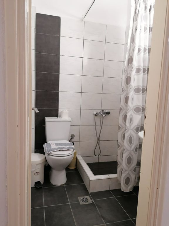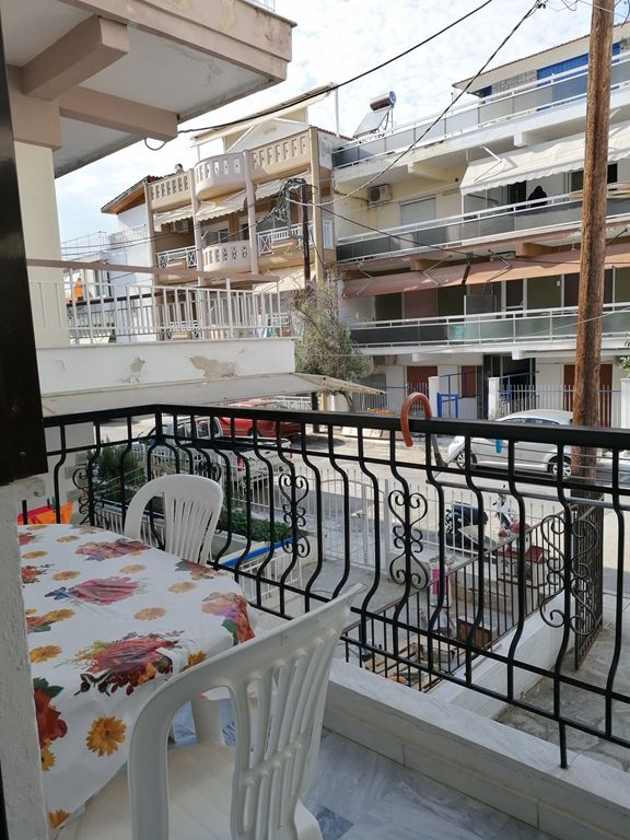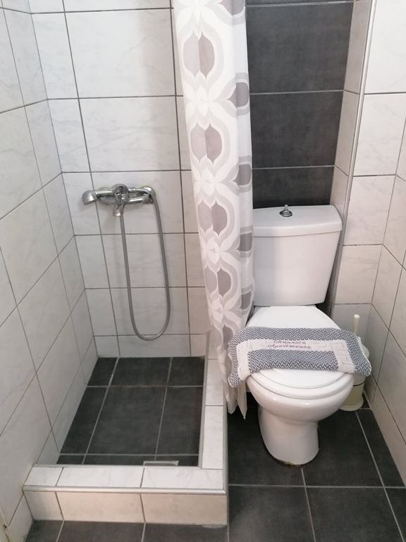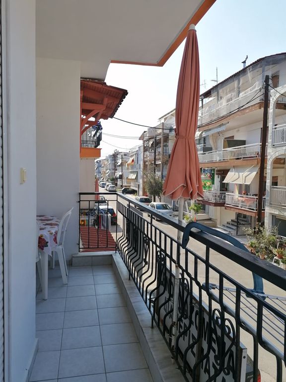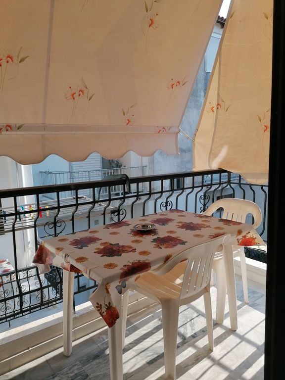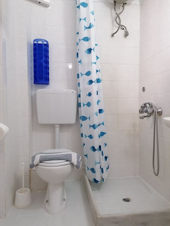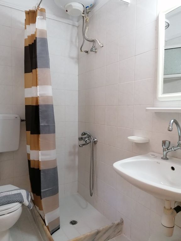 1/6 Дуплекс апартман бр. 29 – втор кат. Дуплекс апартманот има три простории, од кои две се посебно издвоени спални соби со врати и посебна кујна што се наоѓа во средина меѓу двете соби. Во секоја спална соба има по еден стандарден брачен кревет (димензии 190-140 см) и еден стандарден единечен кревет (димензии 190-90 см), мебел, фен и телевизор во секоја спална соба. Од едната спална соба се излегува на голема пространа тераса со директен фронтален поглед море, опремена со пластична маса, столчиња и тенда а и од другата спална соба исто така има уште една помала тераса која гледа кон улица. Во средината меѓу двете спални соби има пространа комплетно опремена кујна во која има голем шпорет со рерна, аспиратор, голем фрижидер со одделна комора и комплет садови за готвење и јадење. Тука се наоѓа и клима уредот. Од кујната се излегува на истата тераса која продолжува кон едната спална соба. Дуплексот располага со сопствен стандарден тоалет со туш.