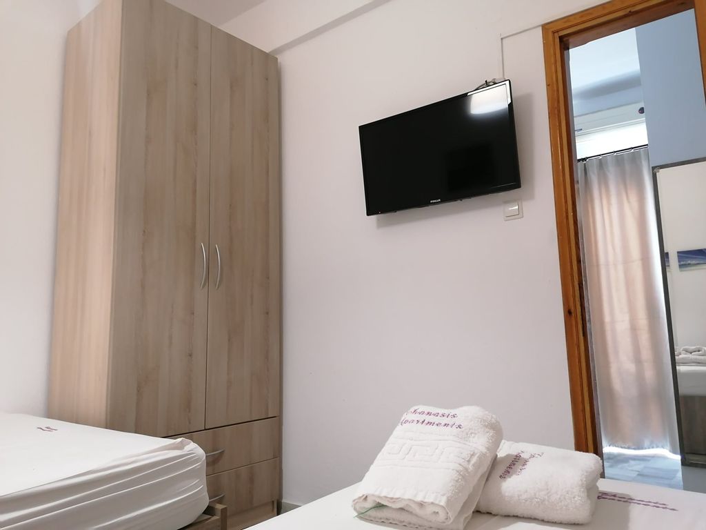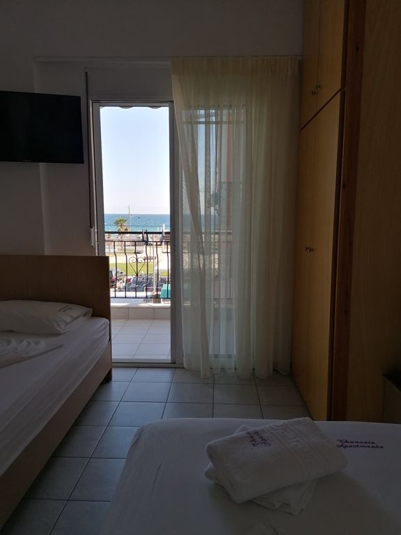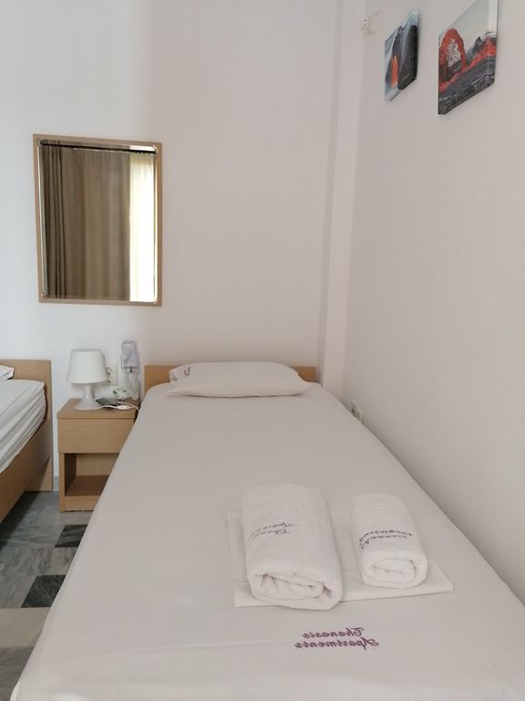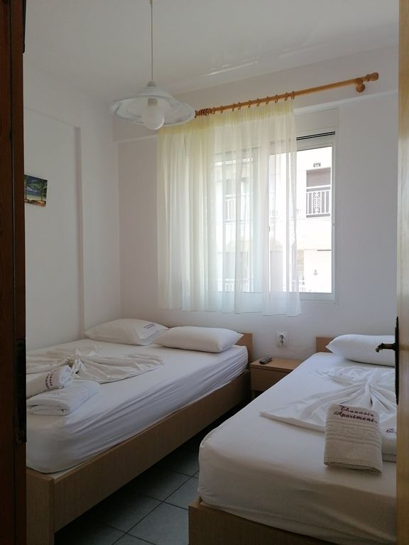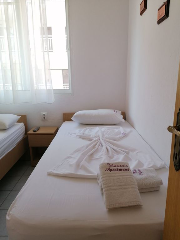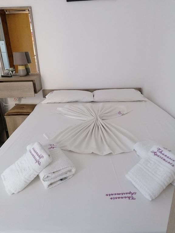 Вила „Thanasis Apartments“ ( ex – Bouzalis ) е лоцирана на самото шеталиште во Неа Флогита, на идеална локација во местото, прва линија море. Вилата располага со студија, апартмани и дуплекс апартмани со најразлична големина кои се целосно реновирани. Дел од сместувачките капацитети имаат директен поглед на море, а останатите имаат поглед на улица или во дворот на вилата, а се наоѓаат на прв и втор кат. Сите сместувачки капацитети имаат сопствени тоалети и се опремени со кујни (електрични шпорети со рерни, фрижидери со одвоени комори и сите потребни садови за готвење и јадење), комарници, телевизор, фен и клима уред чие користење е вклучено во цената. Опремени се со постелнина и пешкири кои се менуваат еднаш во текот на седум дена. Затоплувањето на водата во најголем дел од сместувачките капацитети е со сончеви колектори (во несончеви денови водата се затоплува на струја) , а вилата е покриена со безжичен интернет. Во непосредна близина има паркинг простор, а место за паркинг има и на самата улица околу вилата.