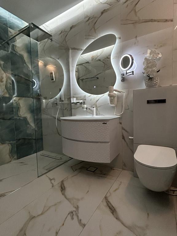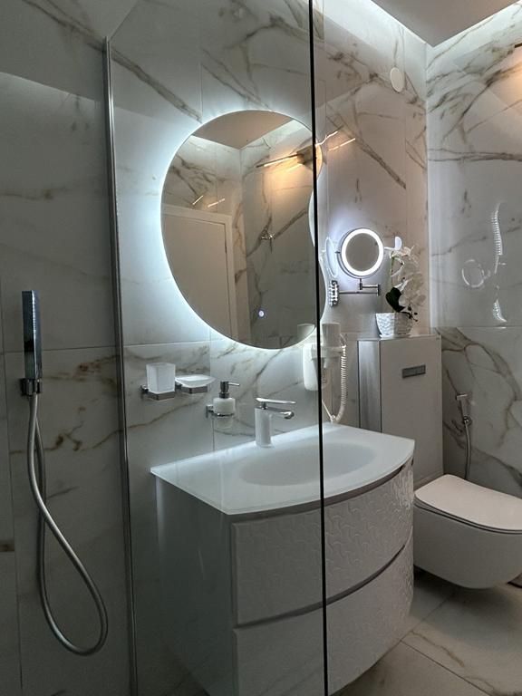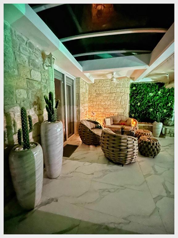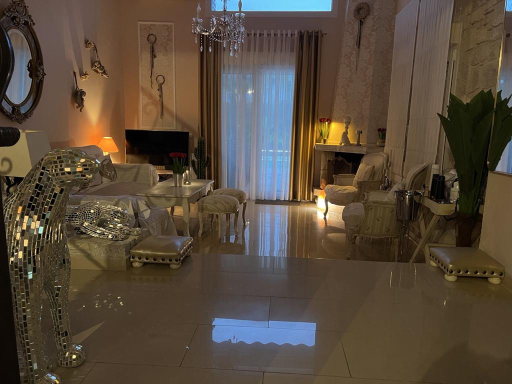 - Ниско приземје: Голема спална, дневна со петосед на спуштање, купатило, iPTV 75’, двор со гарнитура за седење.