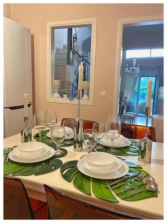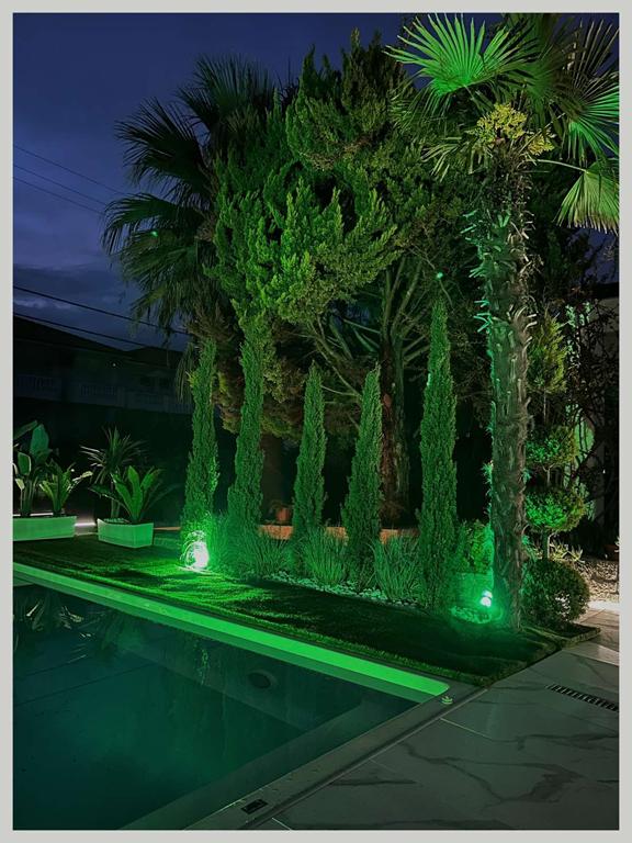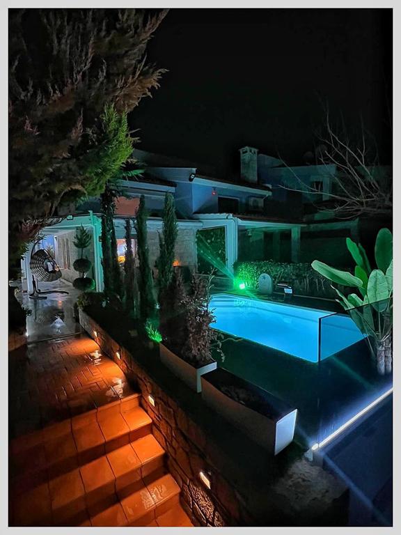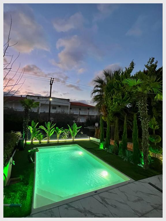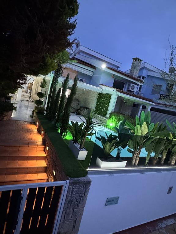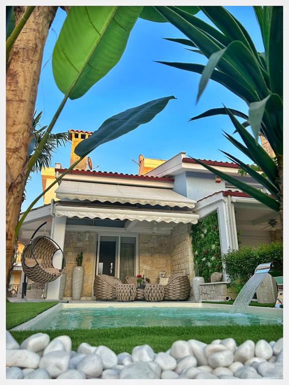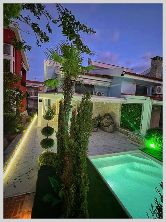 Вила “MEDITERAN”, се наоѓа на околу 50m од плажа, до ресторан Бакалис и Триденте Маре, плажа. Комплетно опремена премиум вила со сите потреби за идеален престој. 160m2 на III спрата – 4 спални, 3 купатила, кујна со тераса, голем двор со базен и џакузи, приватен паркинг. Идеална за 8 возрасни и 2 деца. Распоред по спратови: