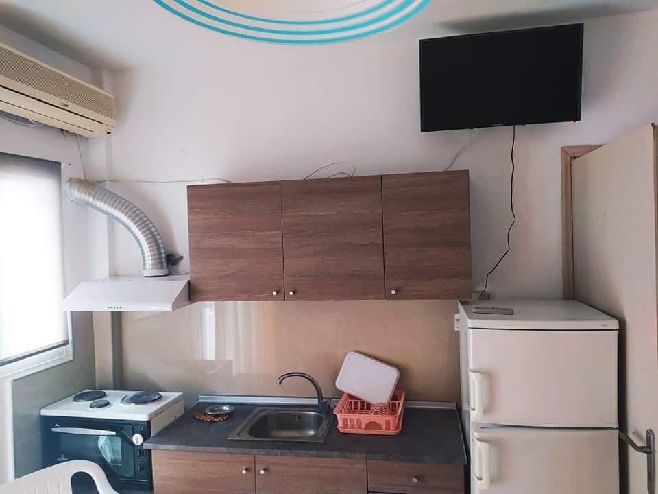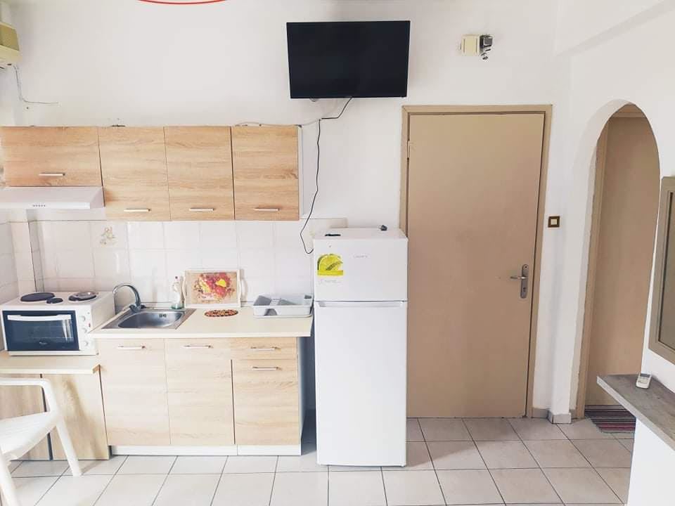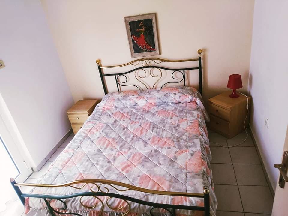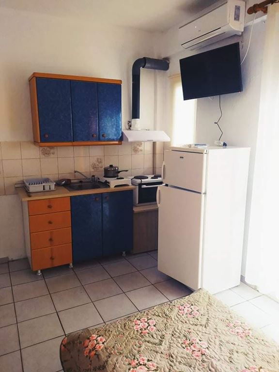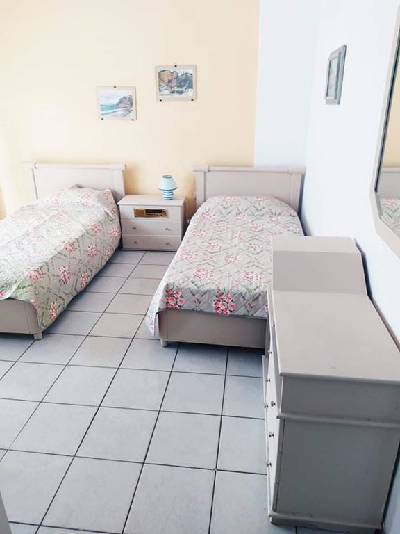 Апп 1- 1/4 на прв спрат, два одделни кревети во кујната и француски лежај во спална. Апартманите се опремени кујна, шпорет БЕЗ рерна, фрижидер, основни садови за соодветниот број на лица , ТВ, 2 тераси (и од кујната и од спалната) со страничен поглед на море, Wi-Fi интернет, купатило со када, клима.