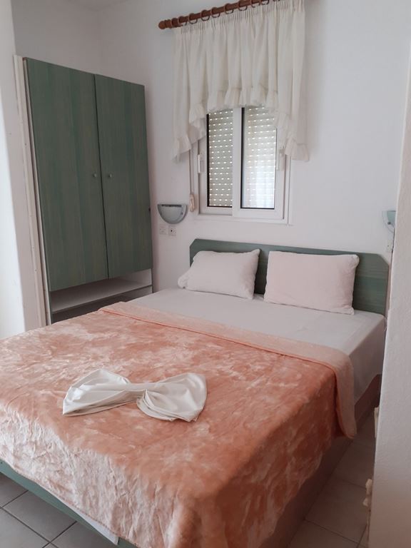 Студио 4 – 1/3+1- дупли со единечен+1 единечен, со голем фрижидер, опремена кујна, шпорет БЕЗрерна, основни садови за соодветниот број на лица , ТВ, тераса со страничен поглед на море, Wi-Fi интернет, купатило клима.