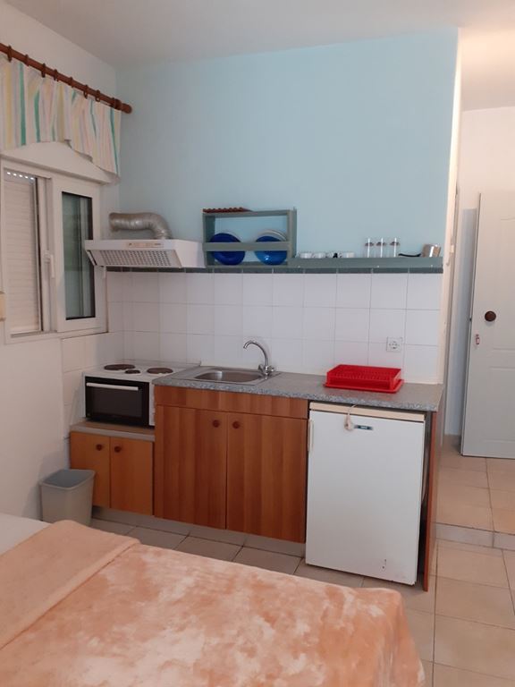 Студио 5 – 1/2 +1 – брачен кревет по грчки стандард и 1 единечен кревет,  фрижидер, опремена кујна, шпорет БЕЗ рерна, основни садови за соодветниот број на лица , ТВ, интернет, купатило, клима, тераса со страничен поглед на море.