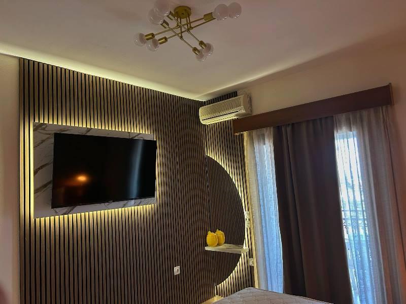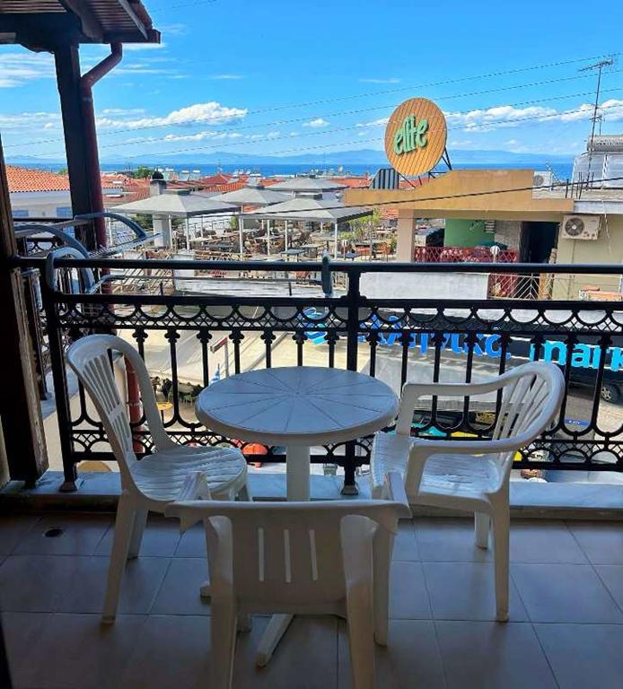 Апарт Хотел Посеидонио се наоѓа на 100 метри од плажа на одлична локација во центар на Полихроно веднаш до црквата. Располага со апартмани со 1 спална соба (extra king size 200×200) каде што можат да се сместат двајца возрасни и дете до 7-8 год. Апартманите се реновирани 2025 Година, комплетно опремени со тоалет, кујна, тераса со поглед кон улица и море, ТВ, интернет и клима – вклучена во цена. Во склоп на вилата има паркинг со доплата 10€ од ден со претходна најава при резервација, доколку има слободни места. Апартманите се наоѓаат на I и II кат. Ви посакуваме убав престој...