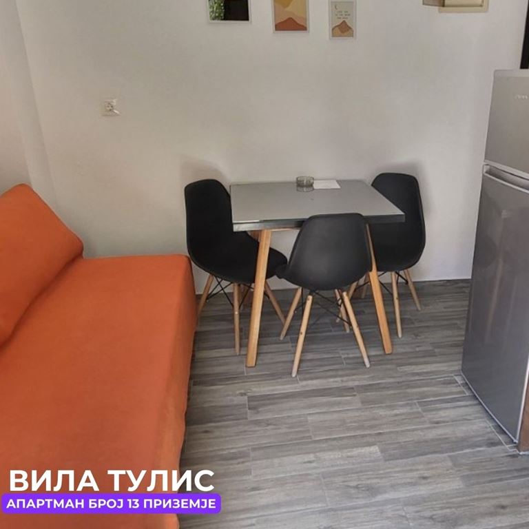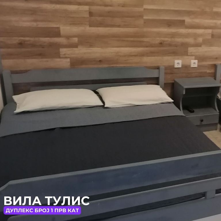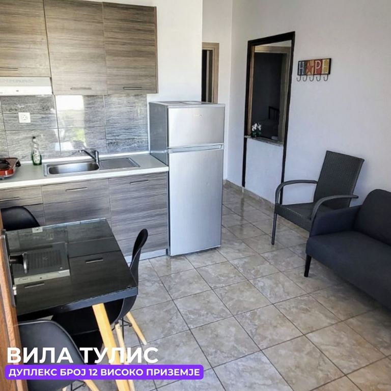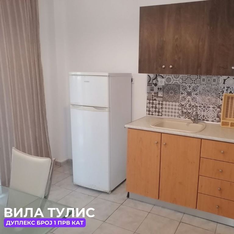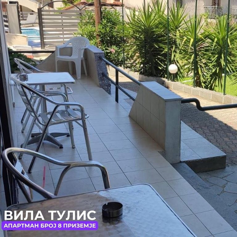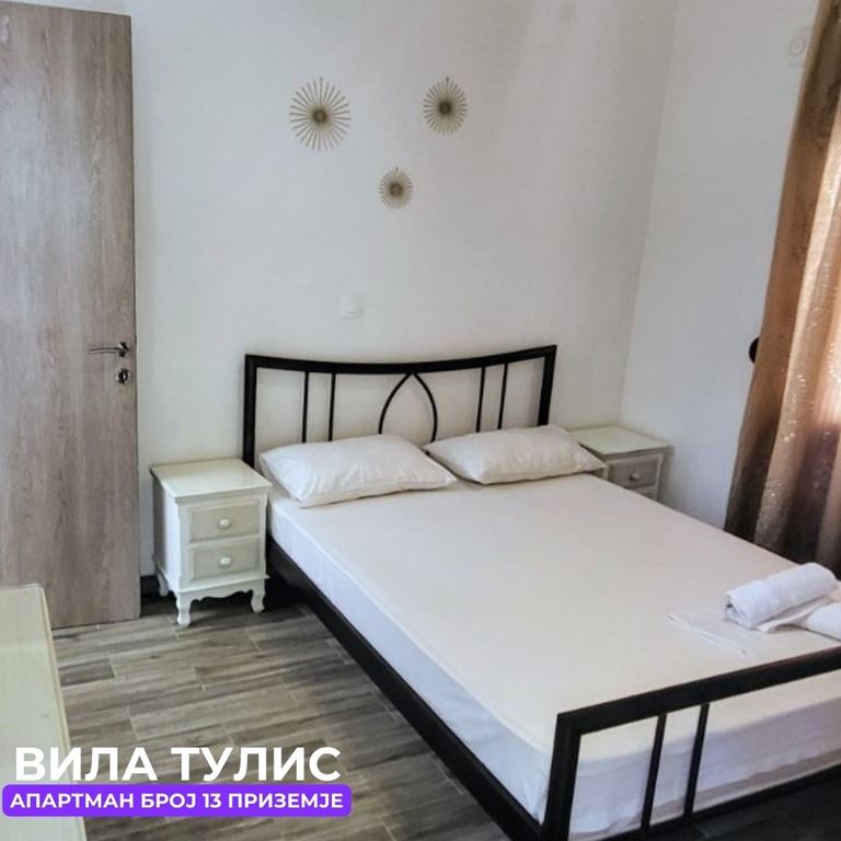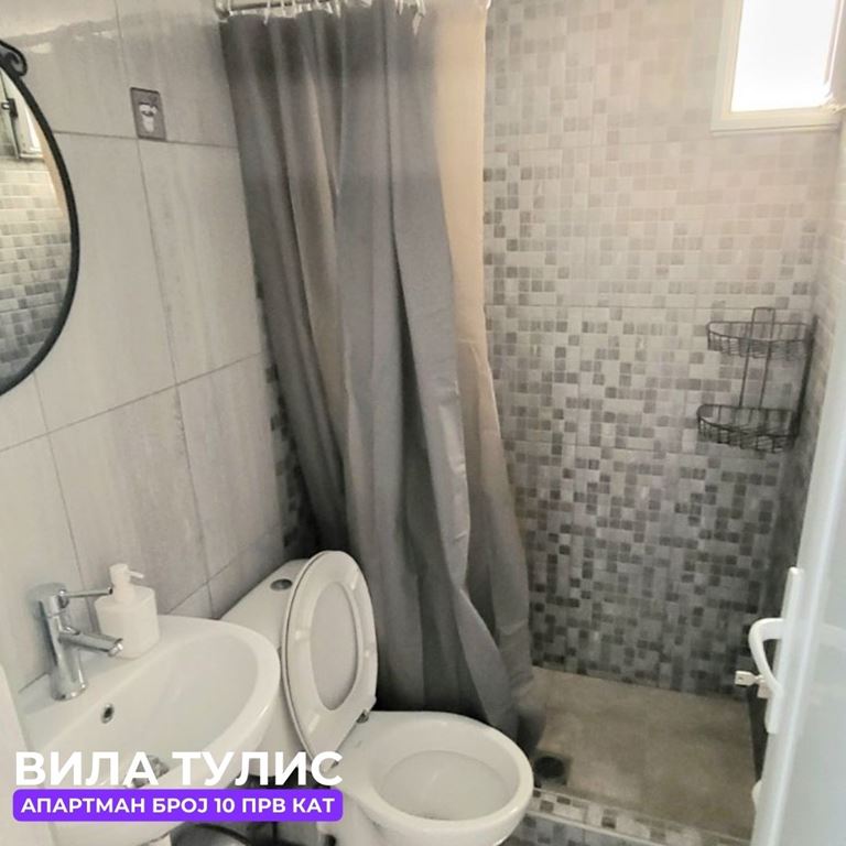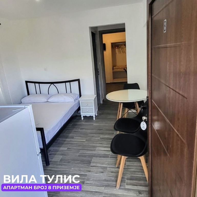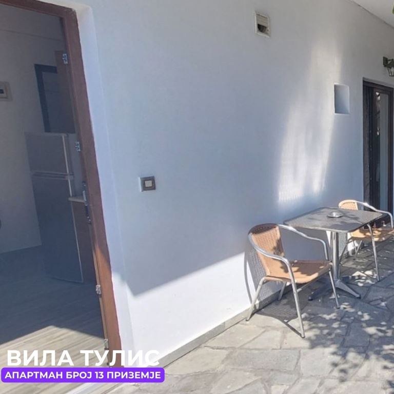Вила Тулис  (целосно реновирана) се наоѓа на 300 метри од плажа во самиот  центар на Полихроно, веднаш над црквата. Вилата располага со апартмани за три, четири и дуплекс апартмани за пет лица, комплетно опремени со кујна, тоалет и тераса. За секој апартман има обезбедено приватен бесплатен паркинг, заеднички двор за дружење на гостите, иралиште за кошарка и приватна теретана. Во секој апартман на пасполагање има  големи пешкири за туширање. Одличен избор за семејства. 2024 Година имавме само пофалби за комодитет, хигена, локација и гостопримство. Сите апартмани се опремени со клима уред чие користење се доплаќа 35 евра за 7 ноќевања на лице место кај газдите на вилата.