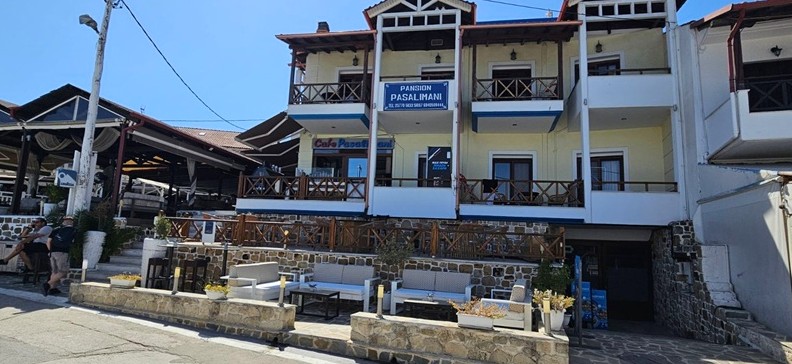 Вилата “ПАСАЛИМАНИИ “-ПОГЛЕД МОРЕ ,лоцирана е во центарот на градот Амулиани со прекрасен поглед кон море.Убаво опремена вила. Секоја соба има кујна комплетно опремена со кујнски инвентар, мал фрижидер со комора и плотна со 2 рингли има клима уред и тв и тераса со маса и столици и прекрасен поглед кон морската шир.Секоја соба има стандардно купатило и вц. Вилата има и безжичен интернет паркинг јавен кој функционира на принципот прво слободно место.
