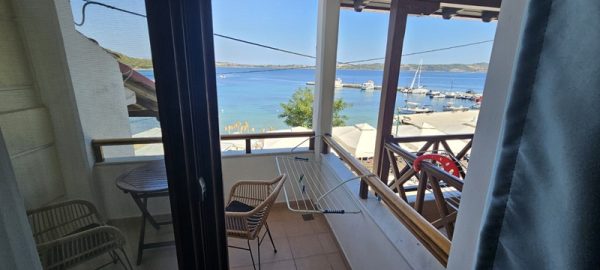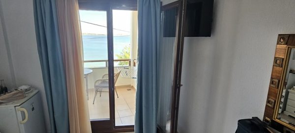 Студиото се наоѓа на прв кат.Има еден дупол кревет комотен за спиење на 2 лица и еден поединечен кревет.Има плакар за алишта,ТВ и клима уред .Кујната е во посебна просторија одвоена со ѕид, опремена со аспиратор, плотна со две рингли, фрижидер со комора и комлетен кујнски инвентар.Има сопствено купатило и ВЦ. Студиото излегува на тераса со маса и столици и прекрасен поглед на море.