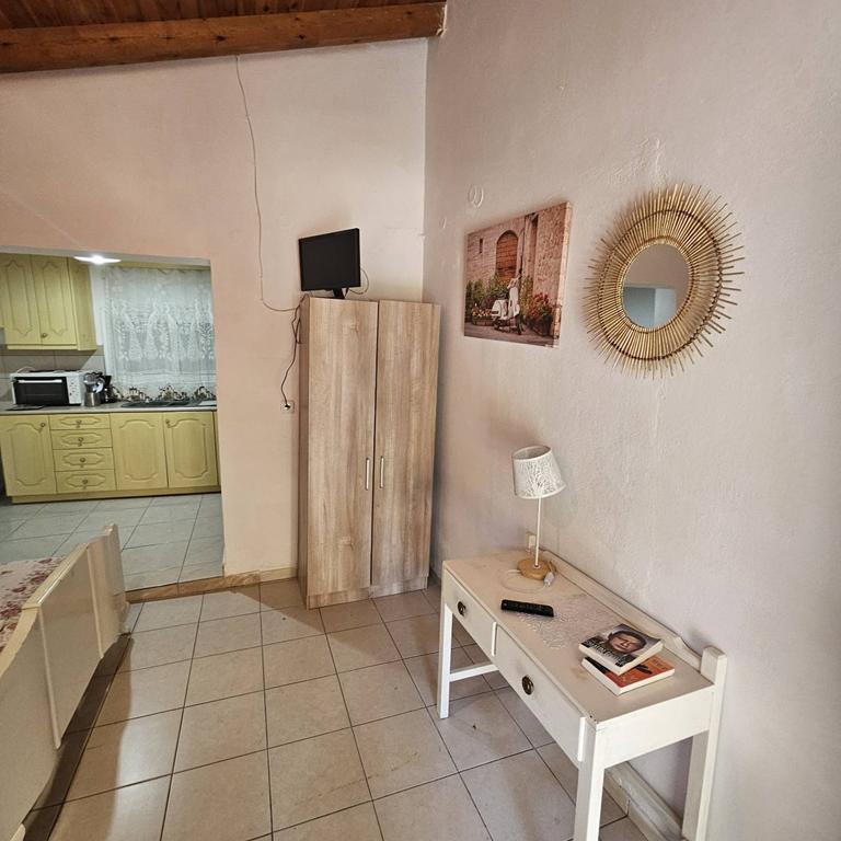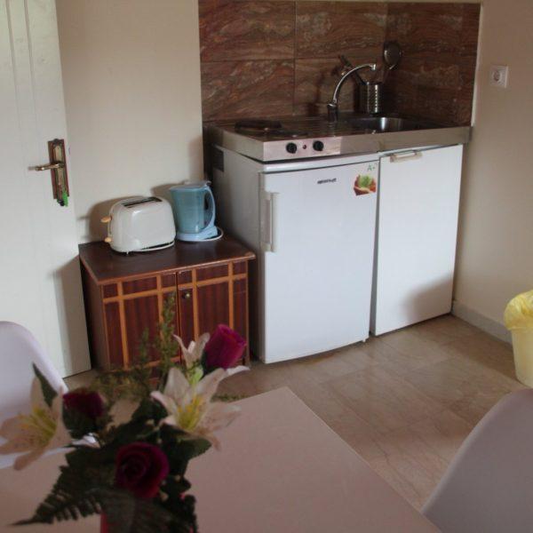 Соба бр.9– Собата се наоѓа на приземје и има поглед на базен. Двокреветна соба (студио) со брачен кревет, мини кујна, посебен тоалет и кујнски прибор со тераса.