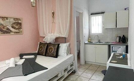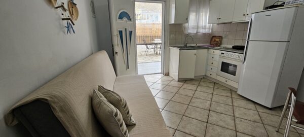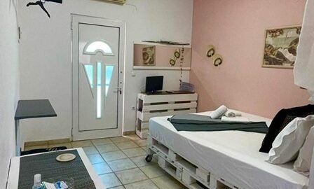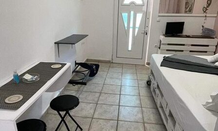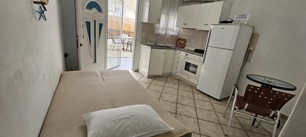Студиото се наоѓа на приземје.Има еден дупол кревет,клима уред, кујната која е основно опремена со кујнски инвентар за лесни оброци без пржење,мал фрижидер,решо со две рингли ,аспиратор, Овде има плакар за алишта и клима уред.Од кујната се излегува на сопствен двор декоративно среден со маса и столици и полн со зеленило. Студиото располага со стандардно купатило и WC.