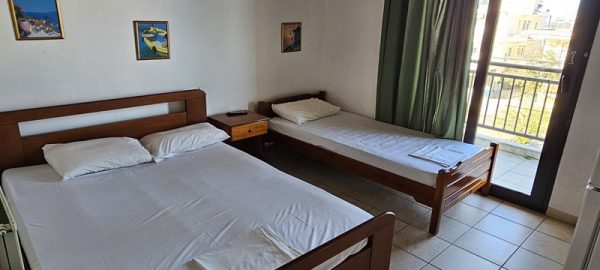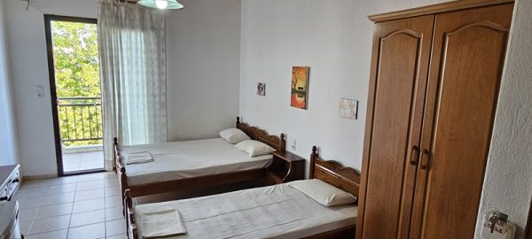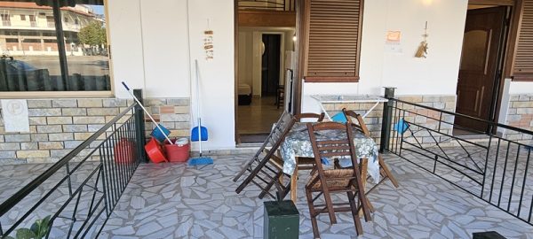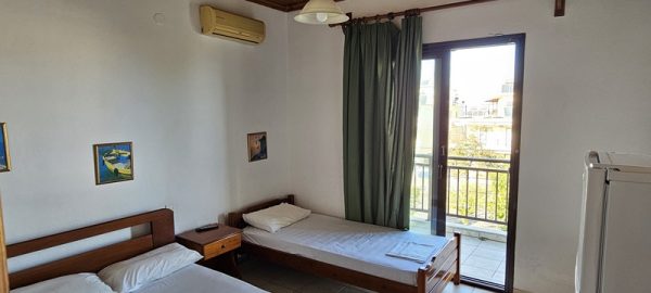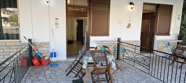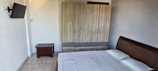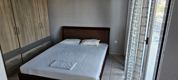 Апартманот располага со две спални соби меѓусебно одвоени со зидче без врата + кујна комотна и комплетно опремена со кујнски инвентар,електрично решо,голем фрижидер.Во едната спална соба има дупол кревет и поединечен кревет,клима уред и излегува на тераса со поглед на море.Втората спална соба има еден дупол кревет ,плакар за алишта,тв и излегува на тераса со поглед на море. Апртманот има стандардно купатило и вц.