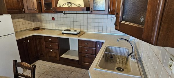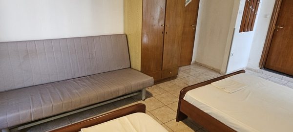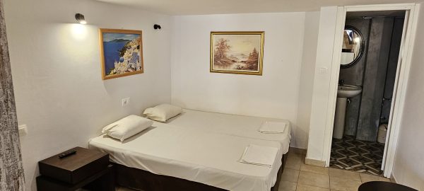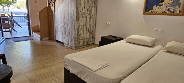 Апартманот располага со две спални соби + кујна комплетно опремена со кујнски инвентар .Во едната спална соба има дупол кревет и поединечен кревет и голем фрижидер и излегува на тераса со поглед на море.Втората спална соба има еден дупол кревет ,плакар за алишта и излегува на тераса со поглед на море.И во двете спални соби има клима уред.. Апртманот има стандардно купатило и вц.