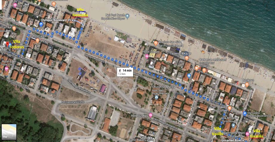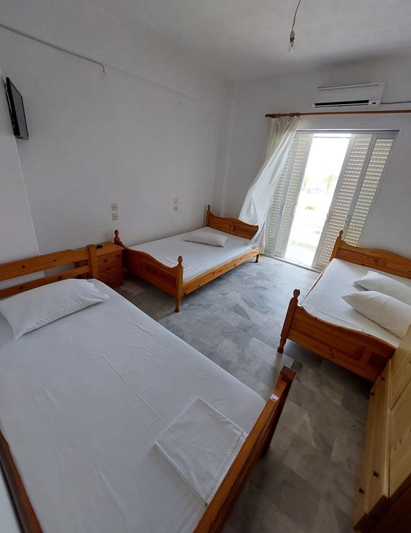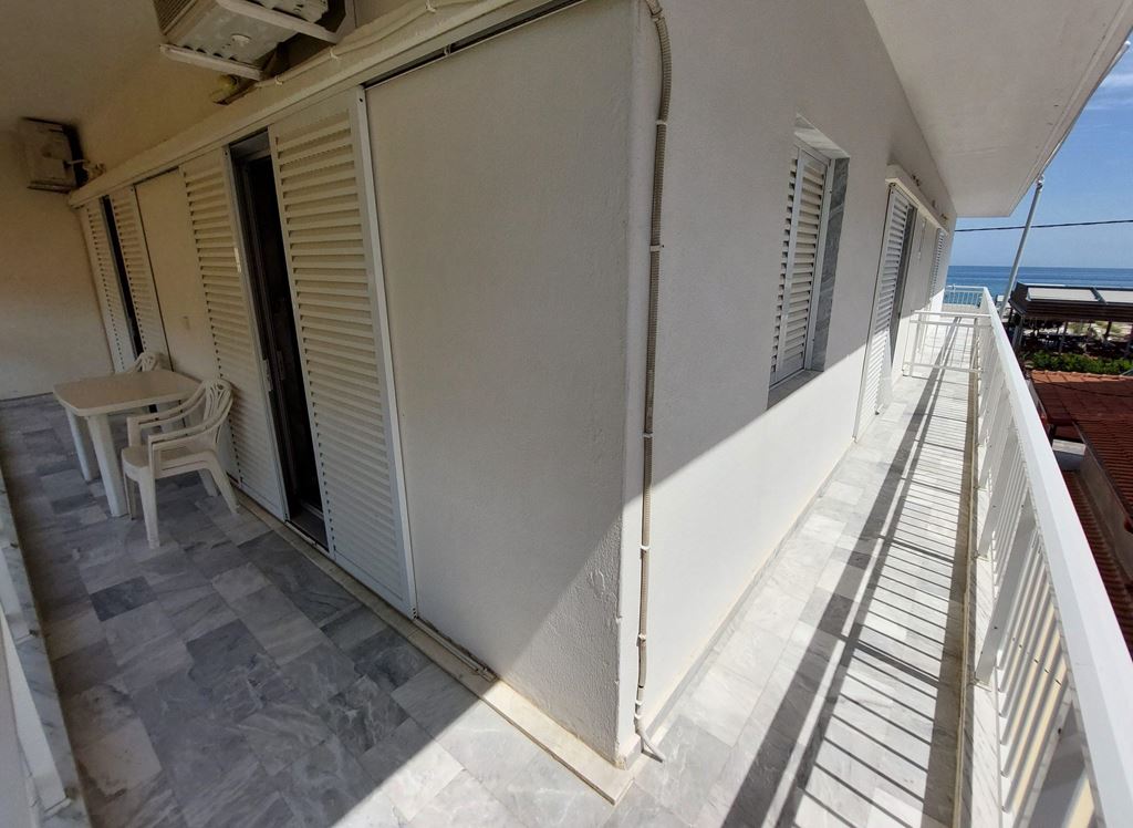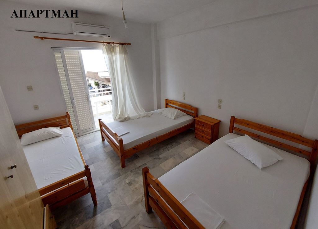 ВИЛА ГЕОРГИЈА на сама плажа, располага со 1/4 студио(еден дупли 2 поед.кревети-Грчки стандард), апартман 1/3 + 2(дупли кревет-грчки стандард) и апартман дуплекс 1/3+1/3 за две фамилии (по два дупли кревети грчки стандард), сите со поглед према море, опремена кујна,ТВ, WI – FI, купатило, комфорни тераси и клима уред – (доплата по 5 € на ден по соба).
