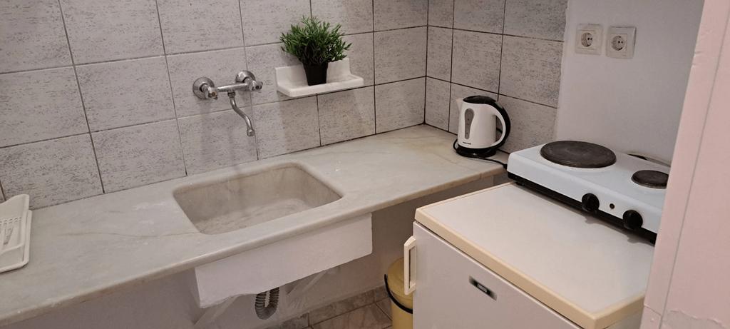 1/2 студио бр. 15 и 16 – прв кат. Студијата располагаат со два единечни стандардни кревети. Одвоена целосно опремена кујна и тераса со страничен поглед кон улица. Студијата имаат сопствен тоалет со туш.