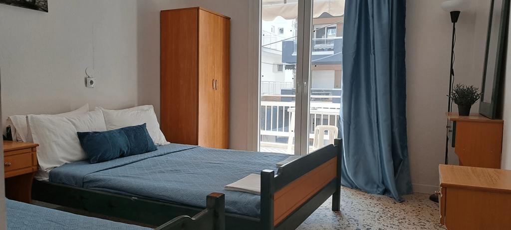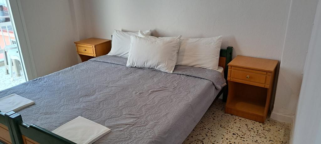 1/3 студио бр. 4 – приземје. Студиото располага со брачен кревет и еден единечен стандарден кревет. Одвоена целосно опремена кујна и тераса со поглед кон улица. Студиото има сопствен тоалет со туш.