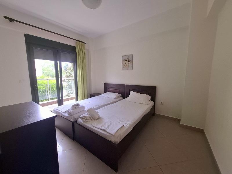 бр.Z2 & Z1 – двоспален апартман на приземје, составен од две спални соби и дневен простор со софа на спуштање, една спална со двоен кревет, втора спална со два единечни кревети, максимум сместување 4 возрасни + 2 деца до 11,99год, нема ограден балкон, седењето е поставено пред самиот апартман.