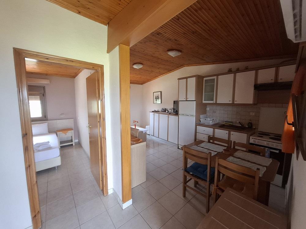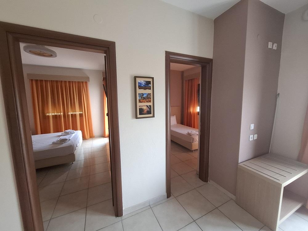 бр.6 двоспален апартман на приземје со една спална соба со дувоен кревет и втора спална со два единечни кревети, со капацитет на 4 возрасни + 1 дете до 5,99год кое дели легло со родители
