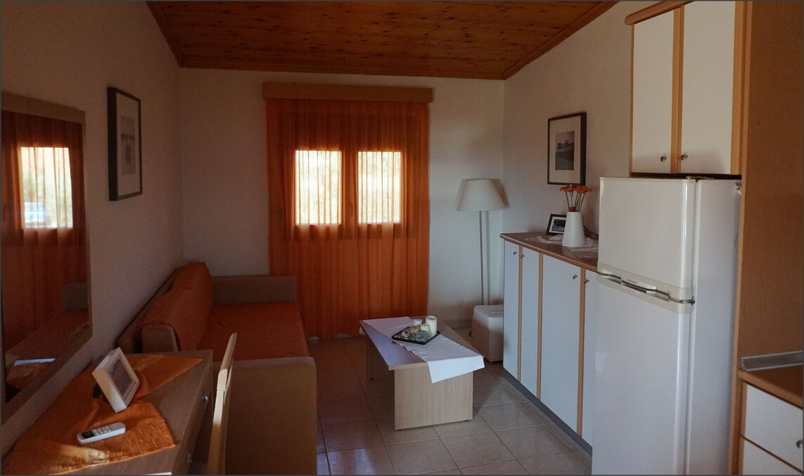 бр.2 едноспален апартман на прв спрат за 3 возрасни лица и дете до 11,99год, апартманот има една спална соба со двоен кревет, и во дневната соба има софа за 1возр+1дете