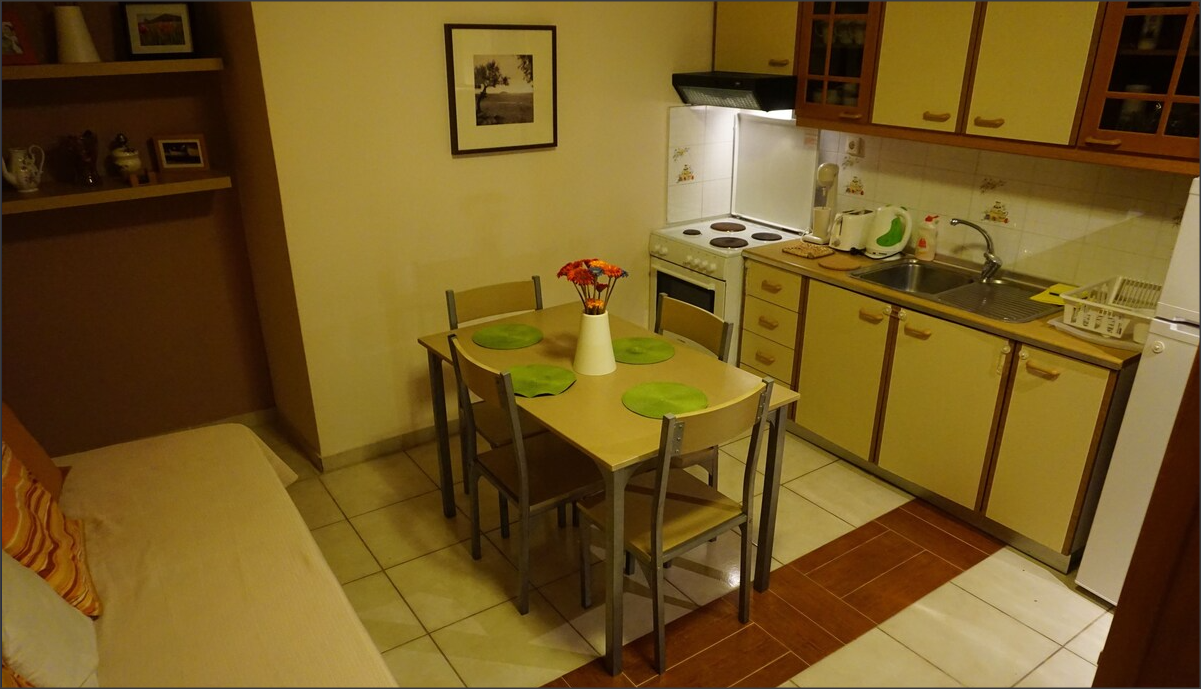 бр.3 студио на прв спрат -1/2+1 со капацитет за 3 возрасни лица, студиото има два кревети и едно дополнително екстра легло на расклопување.