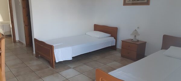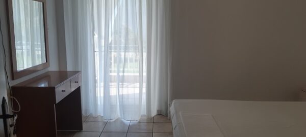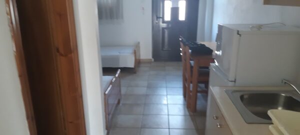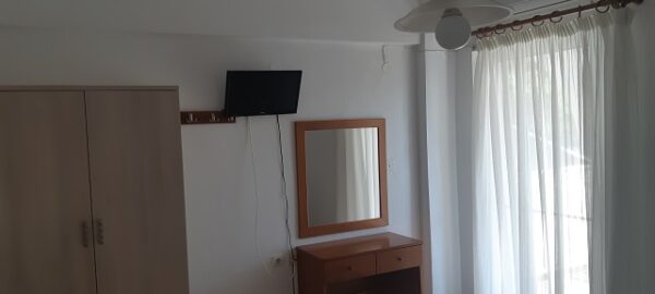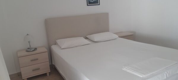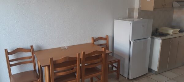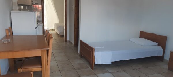 Апартманот располага со кујна ,една спална, купатило со WC и тераса со маса и столици. Во кујната има два поединечни кревети и кујната е комплетно опремена со кујнски инвентар,аспиратор,фрижидер и две рингли.Во кујната има простор за додавање на креветче на расклопување за фамилија со 3 деца.Во спалната соба има еден дупол кревет плакар за алишта,клима уред и тв.Од спалната се излегува на тераса со маса и столици.Апартманот е опрмен на сите прозори со комарници.