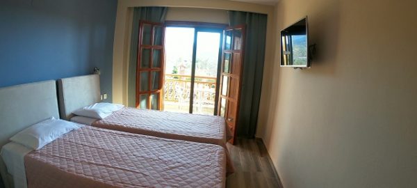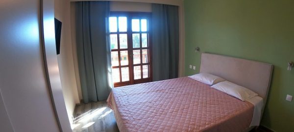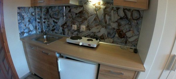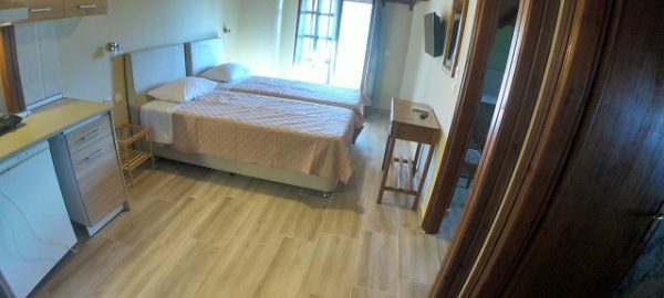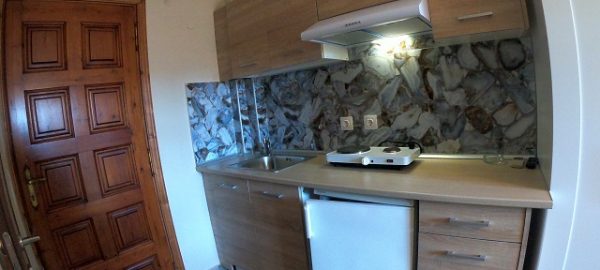 Апартманот располага со две простории.Во едната просторија е кујната која е комплетно опремена со кујнски инвентар, фрижидер, аспиратор и решо и овде има два поединечни кревети. Во другата просторија има дупол кревет клима уред,плакар за алишта и излегува на тераса. Апртманот има стандардно купатило и вц.