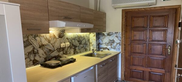 Студиото располага со еден дупол кревет плакар за алишта, клима уред, тв. Во склоп на истата соба е и кујната , која е комплетно опремена со кујнски инвентар, фрижидер, аспиратор и решо. Студиото е опремено со стандардно купатило и вц. Од студиото се излегува на комотна тераса со маса и столици.