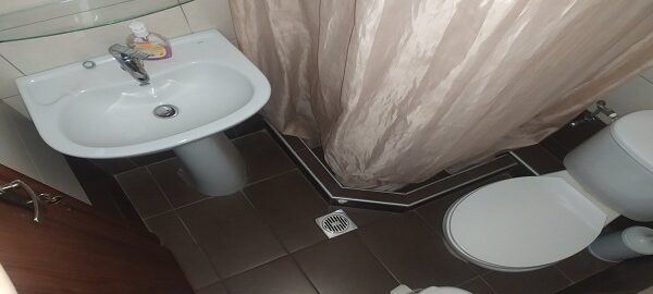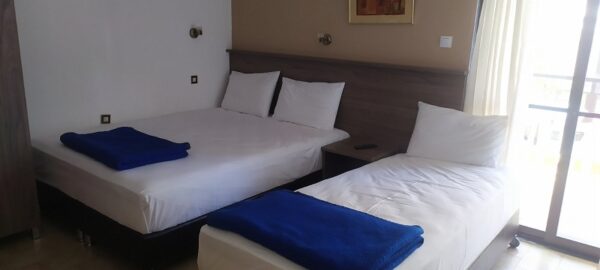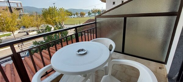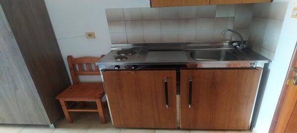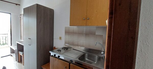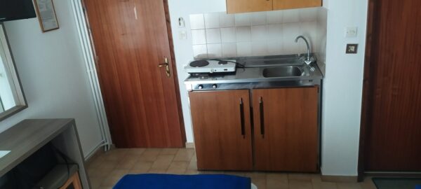 Студиото располага со еден дупол кревет стандарден за спиење за две лица и еден поединечен кревет стандарден за спиење за едно лице,плакар за алишта,тв,клима уред. Во склопот на истата соба има кујна комплетно опремена со кујнски инвентар,фрижидер ,решо со две рингли.Од собата се излегува на комотна тераса со маса и столици. Студиото располага со стандардно купатило и вц.