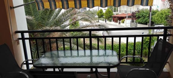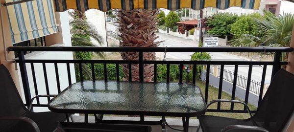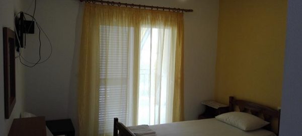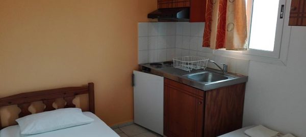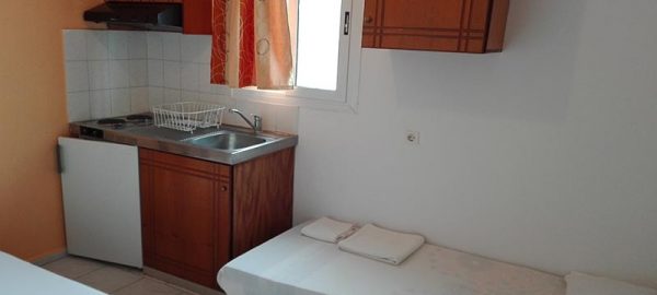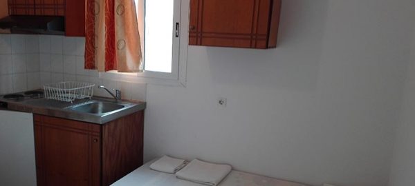 Апартманот располага со две простории. Првата просторија е кујната која е комплетно опремена со кујнски инвентар, решо со две рингли, аспиратор, фрижидер и има 1 поединечен кревет. Во втората просторија има 2 поединечни кревети, плакар за алишта, тв, клима и излегува на тераса на која има маса со столици и тенда, со поглед во убавата градина.Помеѓу двете простории нема врата. Има комарници и ролетни на прозорите .Апартманот располага со стандардно купатило и вц.