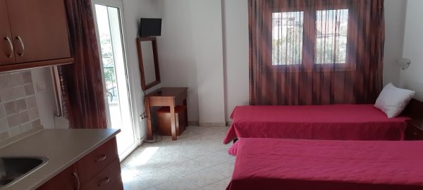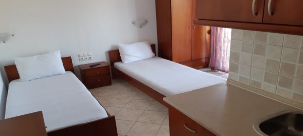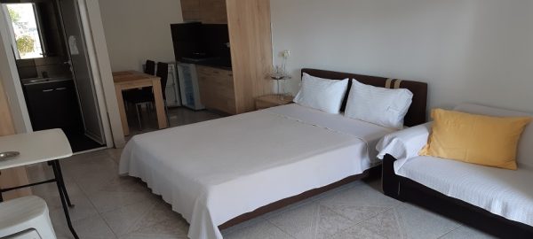 Располага со два поединечни кревети. Во склоп на собата има кујна опремена со кујнски инвентар,фрижидер,решо со две рингли, респиратор ,плакар за алишта, Во собата има ТВ и клима уред.Има сопствено купатило и WC.Студиото излегува на тераса со маса и столици.
