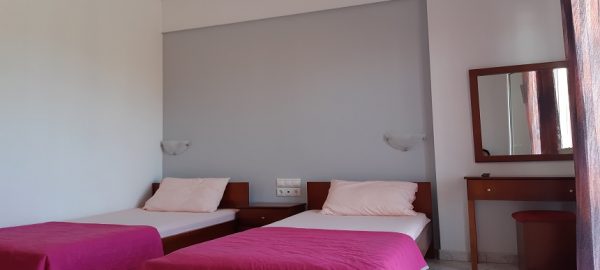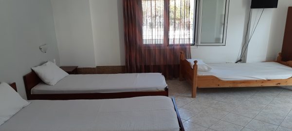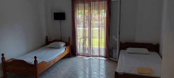 Располага во кујната со еден поединечен и еден дупол кревет.Во склоп на собата има кујна опремена со кујнски инвентар,фрижидер,решо со две рингли, респиратор плакар за алишта , ТВ и клима уред.Во спалната соба има еден дупол кревет.Од двете соби се излегува на сопствено дворче со маса и столици.Има сопствено купатило и WC.