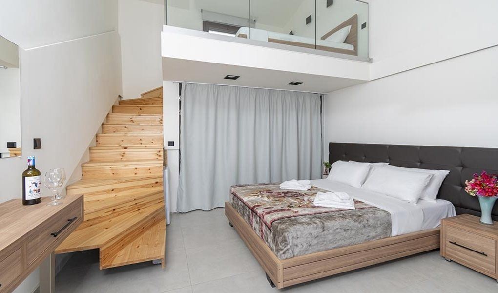 - DBL Maisonette (1/2+1+exb) приземје (Капацитет до 4 лица: 1 двоен + 2 единечни кревети на галерија, тоалет, тераса)
