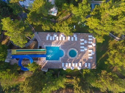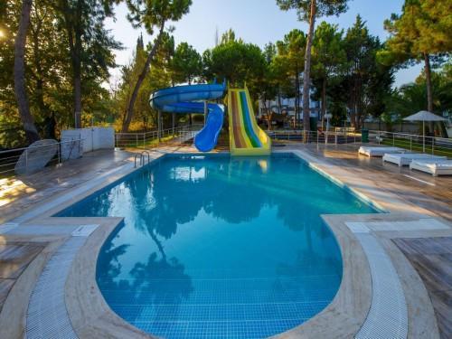 Содржини: Хотелот располага со еден ресторан, два барови, два базена, детски базен, сопствена плажа, Aqua Park, градина, тераса, тениско игралиште, кошарка, мини-голф, одбојка, игралиште за деца, билијард, паркинг, услуги на медицински установи, услуга за организирање на туристички факултативи, анимација (дневна и вечерна).